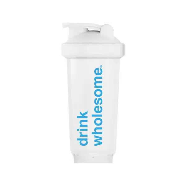 Plus, every shaker bottle features the Drink Wholesome logo, so you can promote your favorite small business.